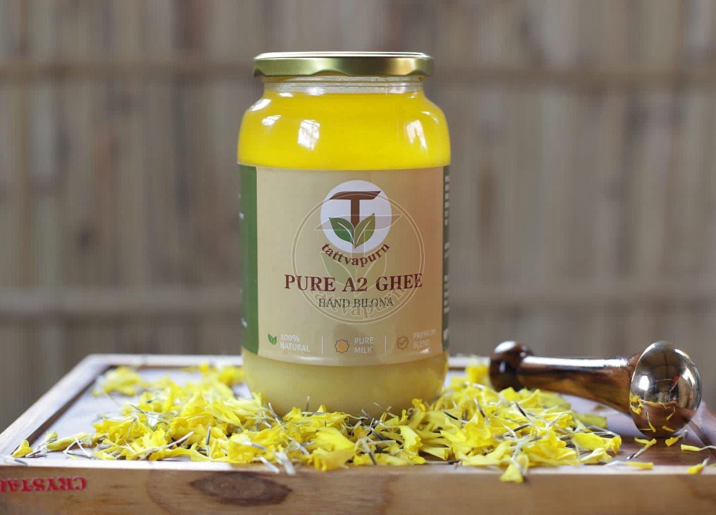 We are Tattvapurn, a trusted manufacturer and supplier of premium A2 Bilona Cow Ghee from India. Our FSSAI Certified ghee is perfect for cooking, with a purity of 99% and processed using the traditional Bilona Method. Stored in a glass jar in a cool, dry place, our ghee has a shelf life of 12 months. The rich yellow color signifies its high quality. Experience the authentic taste and health benefits of our A2 Bilona Cow Ghee, a must-have in every kitchen.